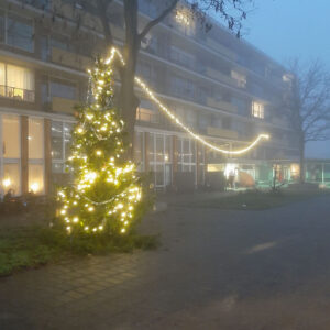 Een groep wijkbewoners uit De Nude hebben samen een kerstboom opgetuigd. Een deel van de buren kenden elkaar al wel, en tijdens een bewonersavond zijn er ook nieuwe verbindingen gemaakt tussen volwassen én kinderen. Met dit project als lichtpunt!